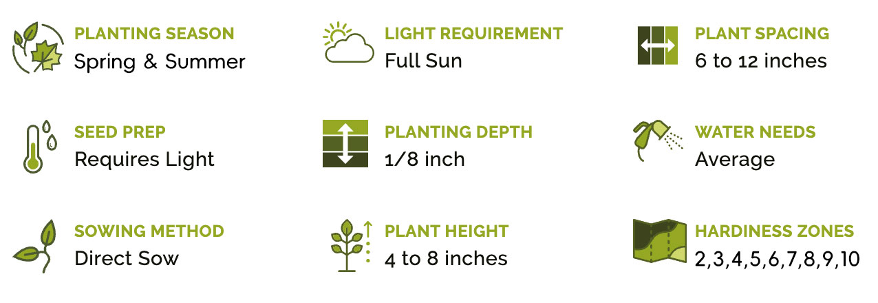 Direct sow seeds once the threat of frost has passed. Light blue eyes also do well in containers. They can also be started "Light Blue Eyes" indoors 4-5 weeks before the last spring frost.